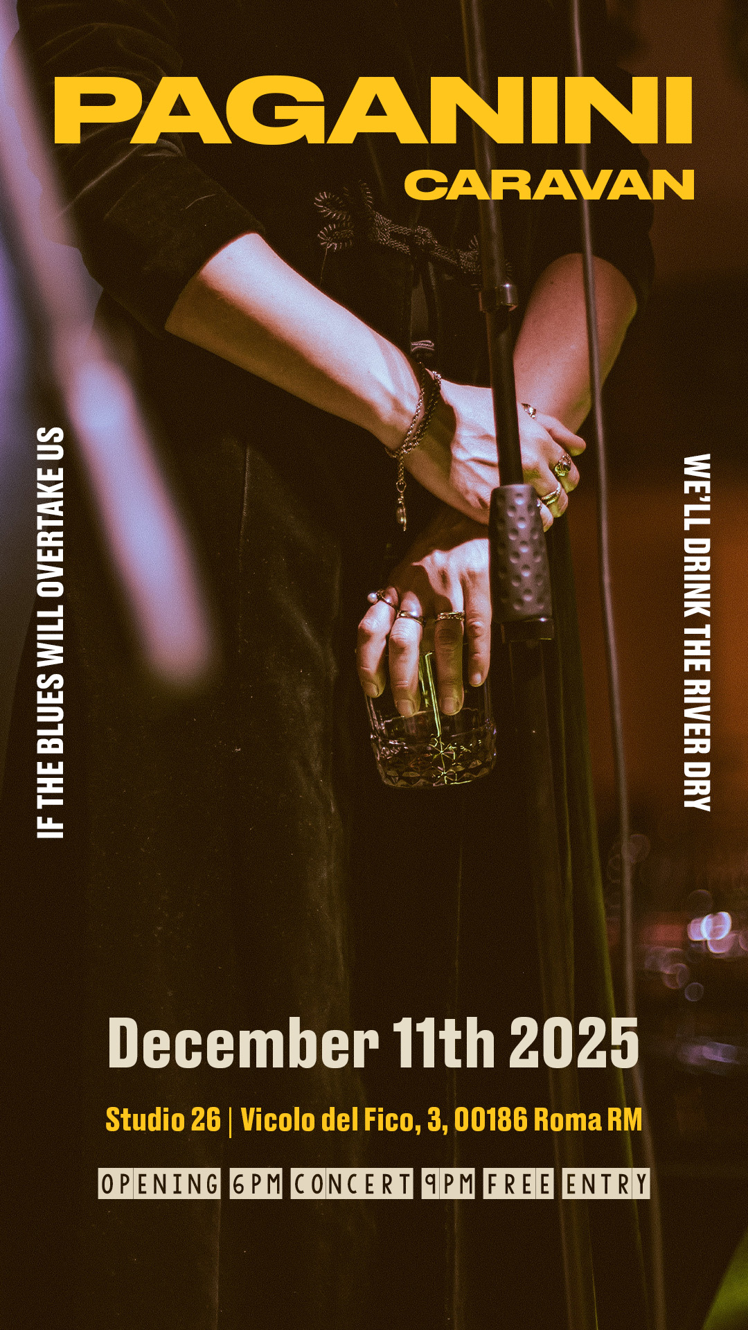 Mr Paganini, fondatore e direttore artistico del collettivo conosciuto come Paganini Caravan, è un cantautore, compositore, autore e performer. Il suo repertorio rievoca le sonorità della tradizione musicale del Sud degli Stati Uniti, dello Swamp Blues della Louisiana e del Dark Country, con derivazioni post country e grunge. La sua musica si caratterizza per una combinazione di sonorità sporche e gipsy che riportano alla mente atmosfere da club clandestini oltreoceano, e una voce potente e graffiante che valorizza testi ricercati ed evocativi. I suoi brani, italiani e inglesi, raccontano “l’odore del suono di posti maledetti che sanno di polvere e whiskey, risate sguaiate e frasi dette sottovoce…”.